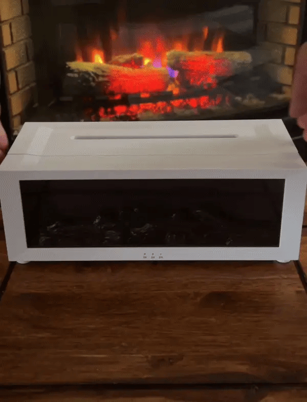FlameMist uses ultrasonic technology to turn water and essential oils into a fine mist. The flame‑like LED light creates a cozy fireplace effect while filling your space with soothing aroma.